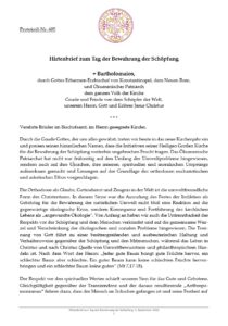 „Die Zukunft des Lebens auf unserem Planeten wird entweder ökologisch und friedlich sein oder nicht existieren.“ – Mit diesen deutlichen Worten hat Patriarch Bartholomaios I. in seinem Hirtenbrief zum „Tag der Bewahrung der Schöpfung“ (1. September) und zum neuen orthodoxen Kirchenjahr eine umfassende ökologische und menschliche Umkehr eingemahnt. Der Patriarch betont die Untrennbarkeit des Respekts vor der Schöpfung und vor dem Menschen. Insofern hätten die ökologischen und sozialen Probleme eine gemeinsame Wurzel: die Trennung von Gott. Dies führe zu einer besitzergreifenden und ausbeuterischen Haltung und Verhaltensweise gegenüber der Schöpfung und den Mitmenschen, „während das Leben in Christus und nach Christus Quelle von Umweltbewusstsein und philanthropischem Handeln ist“, so Bartholomaios. Der Respekt vor den spirituellen Werten schärfe den Sinn für das Gute und Gebotene.