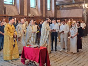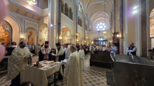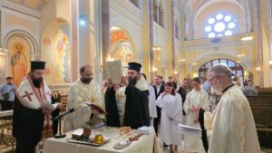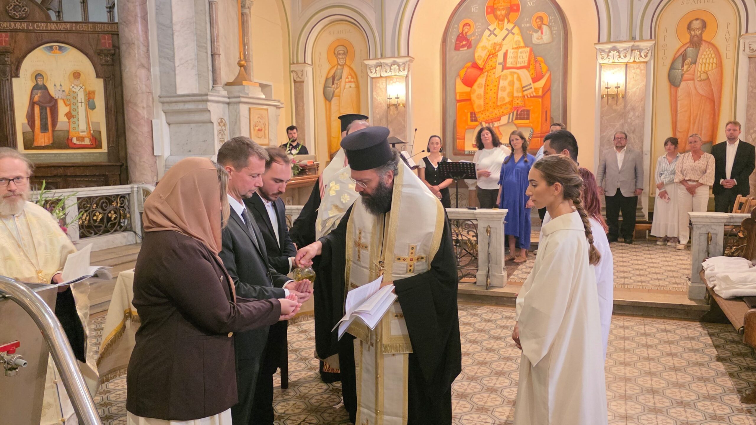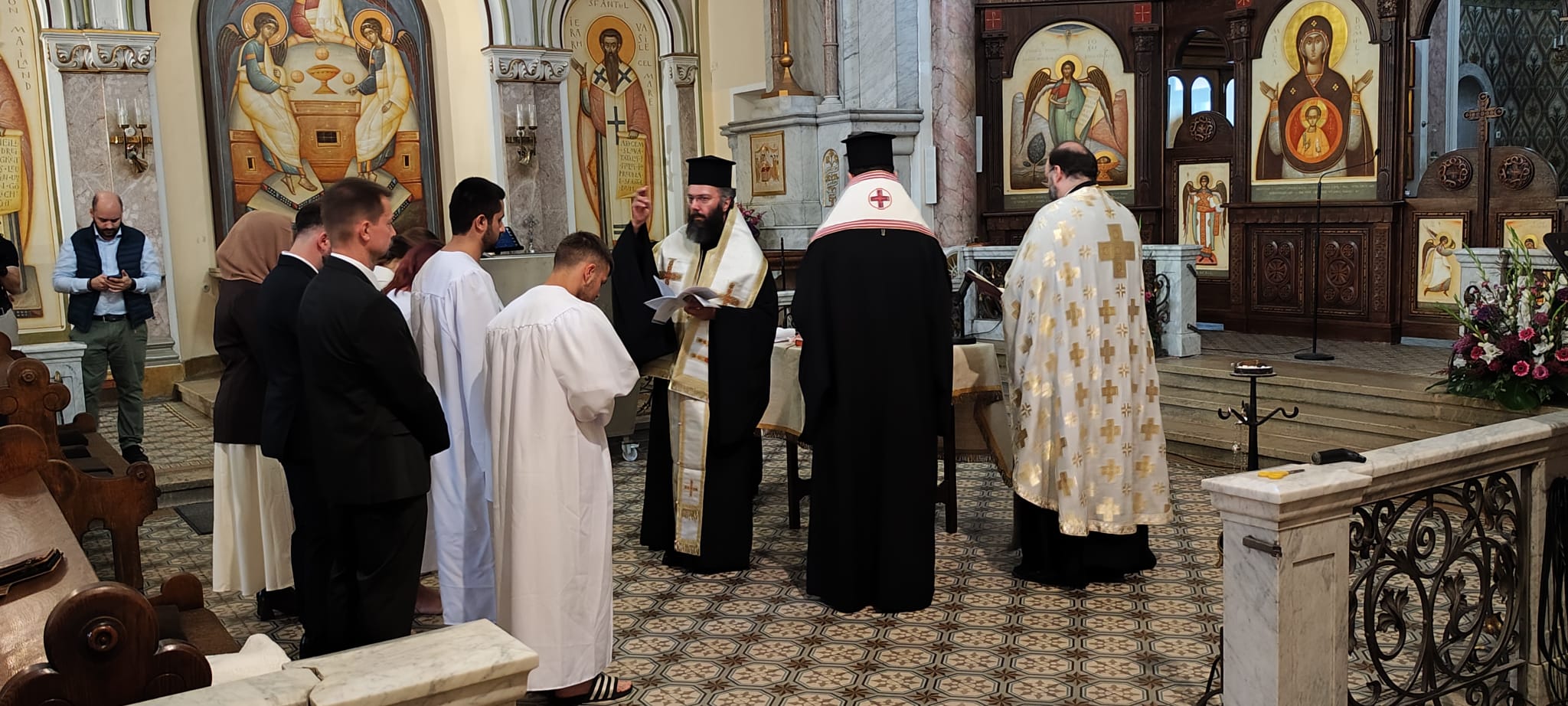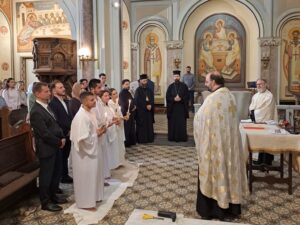 Am Samstag den 20. September 2025 wurden zunächst vier Katechumenen durch die heilige Taufe in die Kirche Christi aufgenommen. Das Sakrament wurden in großer Freude und Würde von seiner Eminenz Metropolit Arsenios und seiner Exzellenz Bischof Maximos gemeinsam mit unseren Priestern, Erzpriester Nikolaus und Archimandrit Athanasius gespendet. Die Taufe wurde in der Rumänisch-Orthodoxen Pfarrgemeinde zum Hl. Antonius gefeiert, die uns ihre Kirche und das Erwachsenentaufbecken für diese feierliche Handlung zur Verfügung gestellt hat und der wir herzlich für die Gastfreundschaft danken.