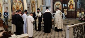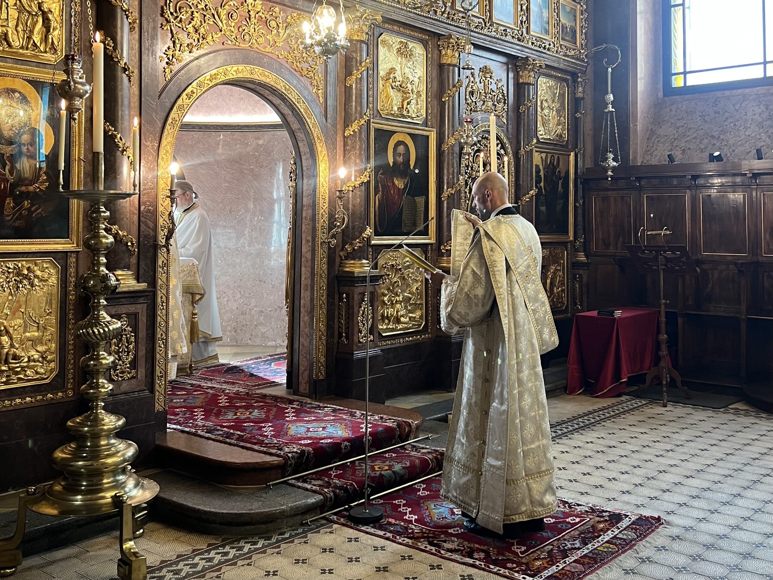 Am Sonntag feierte auch unser neuer Diakon, V. Savvas zum ersten Mal die Göttliche Liturgie mit unserer Gemeinde. Vater Savas wurde am vorangegangenen Sonntag, dem 14. September 2025, des Fest der Kreuzerhöhung in der Kirche zum Hl. Georg zum Diakon geweiht und wird in Zukunft in unserer Gemeinde als Diakon dienen. Diese zusätzliche große Freude verschönerte diesen Tag erneut.
