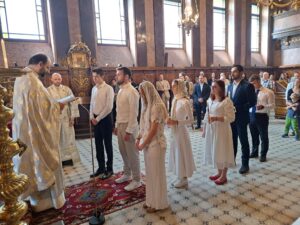 Am Sonntag 21. September 2025 wurde dann drei weitere Katechumenen in der Göttlichen Liturgie chrismiert und so ebenfalls in die Orthodoxe Kirche aufgenommen. Gemeinsam mit den Neugetauften des Vortrags empfingen sie anschließend zum ersten Mal die heilige Kommunion, das kostbare Mahl des Leibes und Blutes Christi, das uns alle vereint.